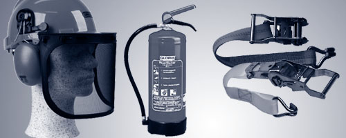 Feuerlöscher, Verbandsmaterial, Schutzkleidung